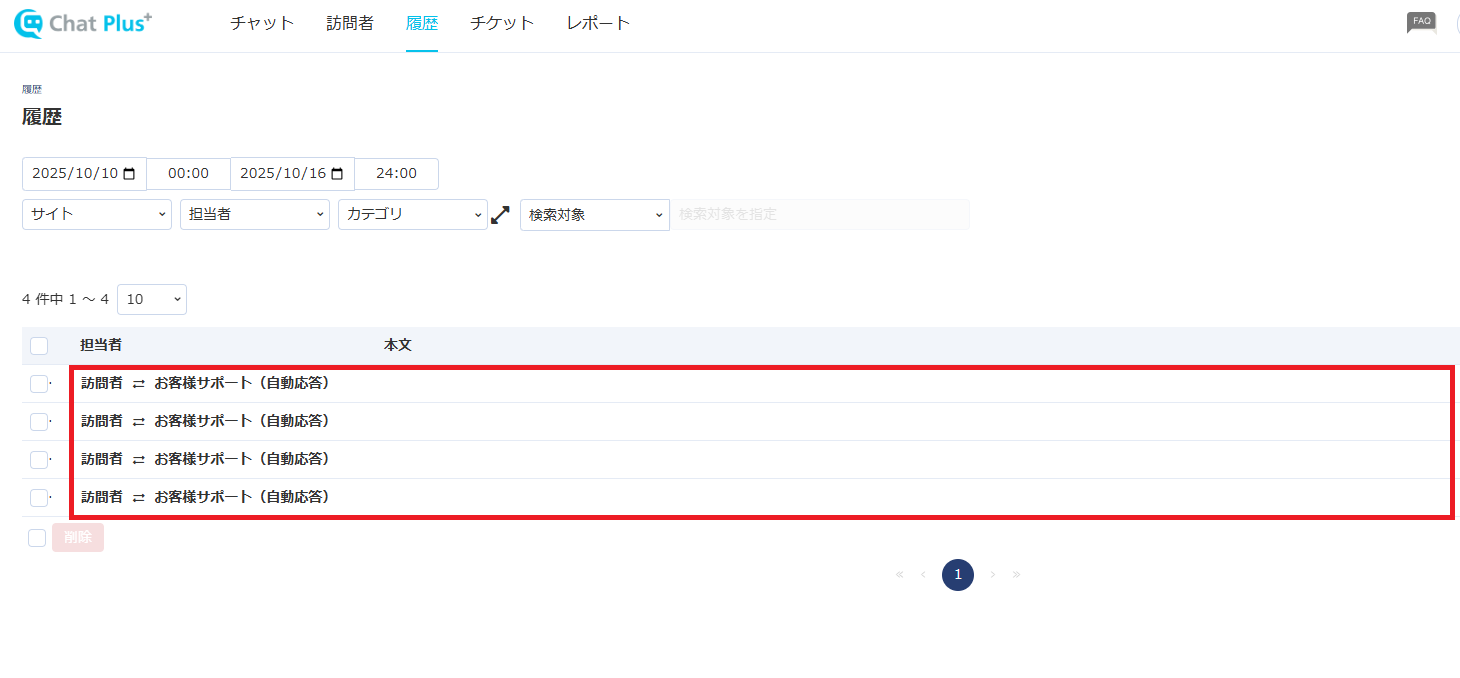 (2) 履歴一覧から、該当のチャットをクリックします。