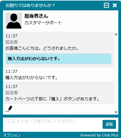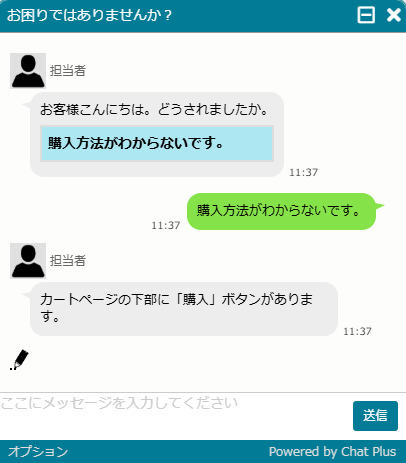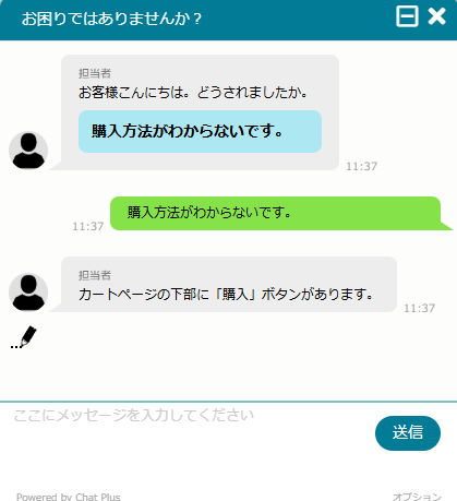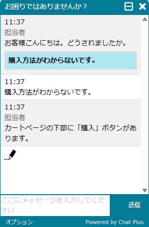 サイトを訪れた閲覧者が気軽にチャットをサポート窓口に送ることができます。