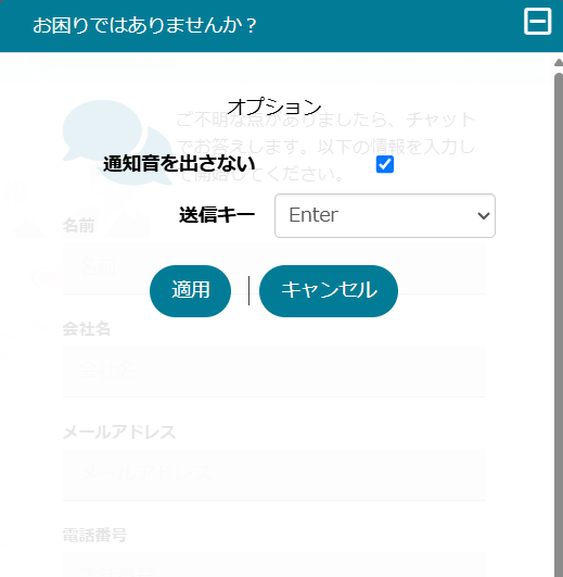 訪問者がオプションをクリックすると、通知音の設定ができます。