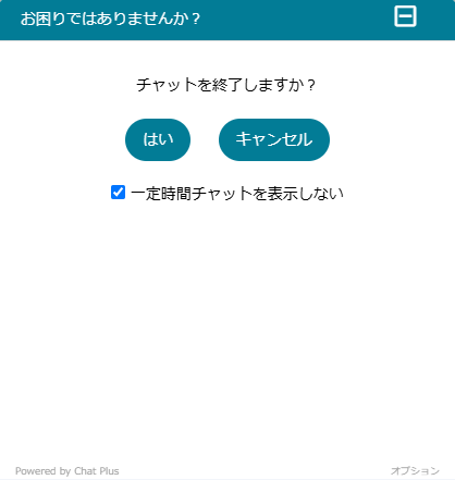 チェックすると、チャット終了後に「一定時間チャットを表示しない」のチェックボックスが表示されます。