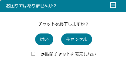 チェックすると、チャットウインドウの「×」ボタンをクリックした際、終了を確認するメッセージが表示されません。