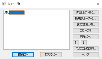 (2) 接続先が表示されるので、あらかじめ設定した接続先をクリックして選択し、「接続」ボタンをクリックします。