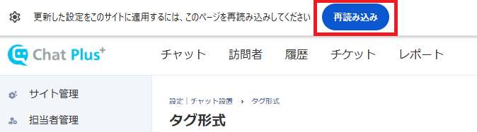(3) 更新後の設定を適用するため、ページの再読み込みを促すメッセージが表示されるので「再読み込み」ボタンをクリックしてください。