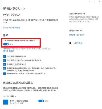 ■Windows 10 で集中モードのオンとオフを切り替える(Windowsサポート)