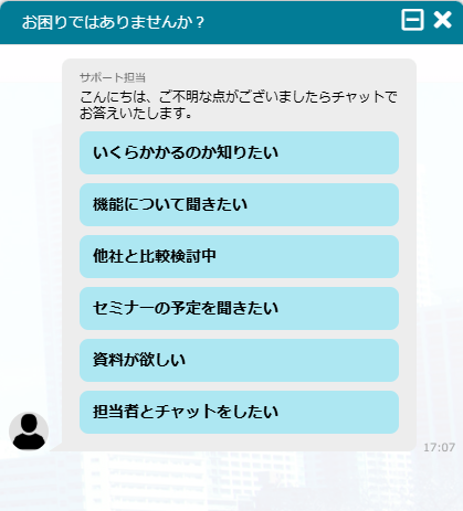 担当者:担当者が手動でチャットを開始した際に発言します。